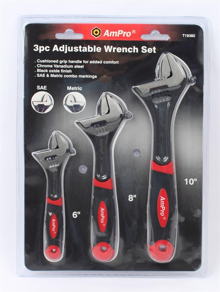 "Material: Chrome Vanadium Steel, 3 - Adjustable Wrenches: 6, 8, 10 inch "